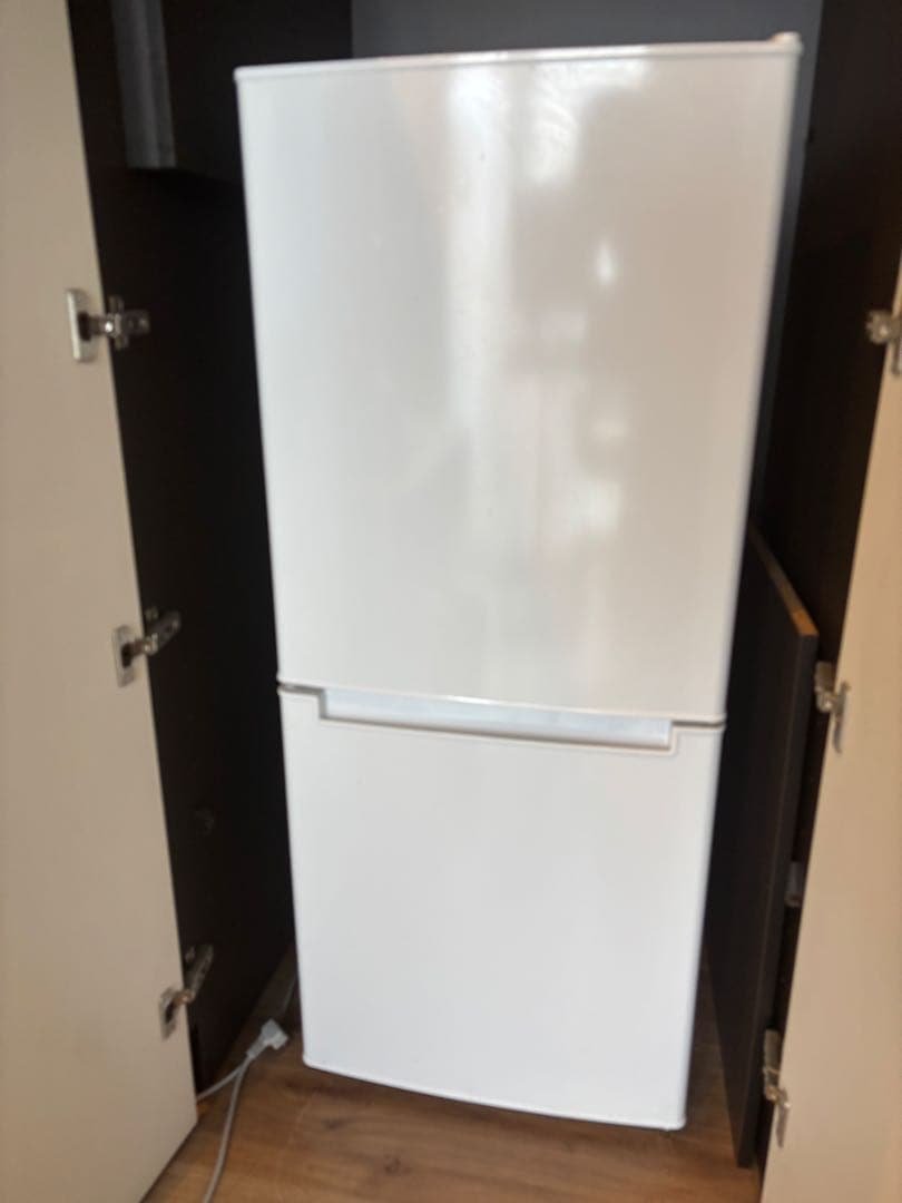 動作確認、清掃済み\rほとんど使用しておりませんので美品です\r写真11枚目は貼ってあるフィルムに空気あ入っている写真です\r正面冷凍扉に、僅かにエクボがございます\r付属品:画像のものが全てです\r※お客様の登録住所にしか配送はできません。購入後の住所変更はできません。\r2025年製\r\r●直冷式冷蔵庫\rパーソナルユースに最適\r●耐熱100℃トップテーブル\r電子レンジなどを設置できます\r●環境に配慮したノンフロン\r地球にやさしいエコ設計\r●使いやすいコンパクト85Lサイズ\r●横幅47.6cm、奥行50.9cmで設置スペースを取りません\r●環境に配慮したノンフロン冷蔵庫\r●高さが85.7cmだから冷蔵庫の上を有効活用\r\r【仕様】\r冷却方式:直冷式\r年間消費電力量:203kWh/年\r定格電圧・周波数:100V 50/60Hz\r電動機定格消費電力:55/55W(50Hz/60Hz)\r省エネ達成率(目標年度2021年度):100%\r冷媒種類:R600a\r騒音値:約26.0dB\r外形寸法:幅476×奥行き509×高さ857mm\r本体質量:25kg\r総容量:85L\r冷凍室容量:25L\r冷蔵室容量:60L\r電源コード長:1.9m\rドア枚数:2ドア\rドア開閉タイプ:右開き\r据え付け必要寸法:幅676×奥行609×高さ1,157mm\r\r※注意事項※\r離島等の特定の地域はアートセッティングデリバリー対象外となる場合がございます。\rコメントのやり取り中であっても、先に購入された方を優先させて頂きます。\rあくまでも中古品になりますのでご理解の上、ご購入お願いいたします\r※いつまでに届きますかの質問にはお答えできません。購入者様の入力手続き、お住いの地域によって異なります。\rたのメル便(匿名配送)での配送になります。\r到着まで少し日数がかかります。お時間には余裕を持って購入お願い致します。(送料込)\rM-062502